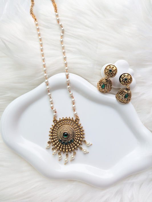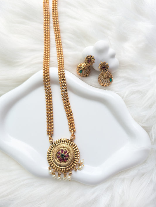 AUR0208- Semi long Traditional Necklace and Earrings