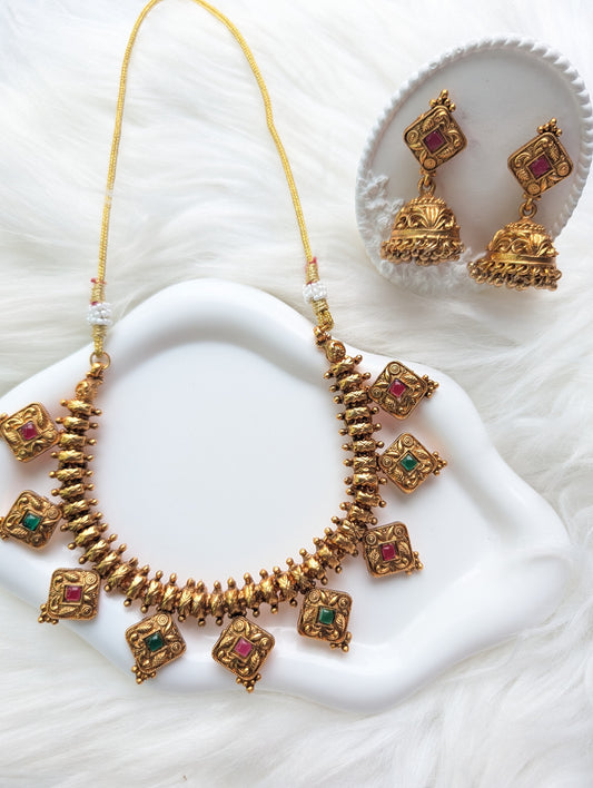 AUR010 - Kerala Traditional Jewelry - Necklace and Earring Set
