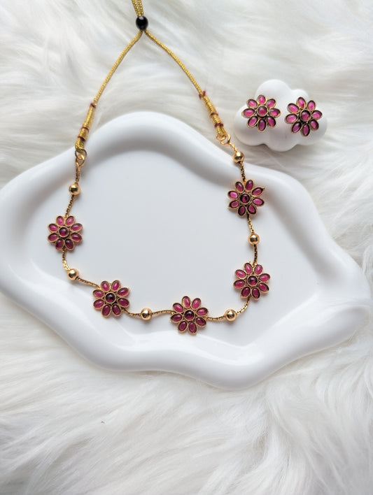 AUR0205- Flower Traditional Necklace and Earrings
