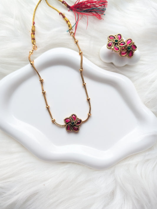AUR0206-Single Flower Traditional Necklace and Earrings