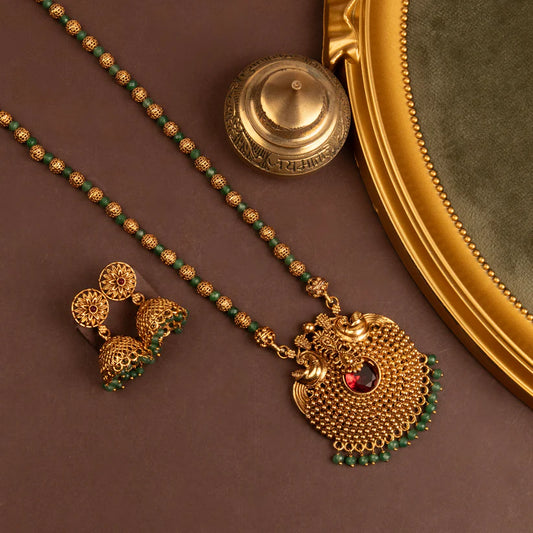 AUR032 - Kerala Traditional Jewelry Set - Long Necklace and Earring Set