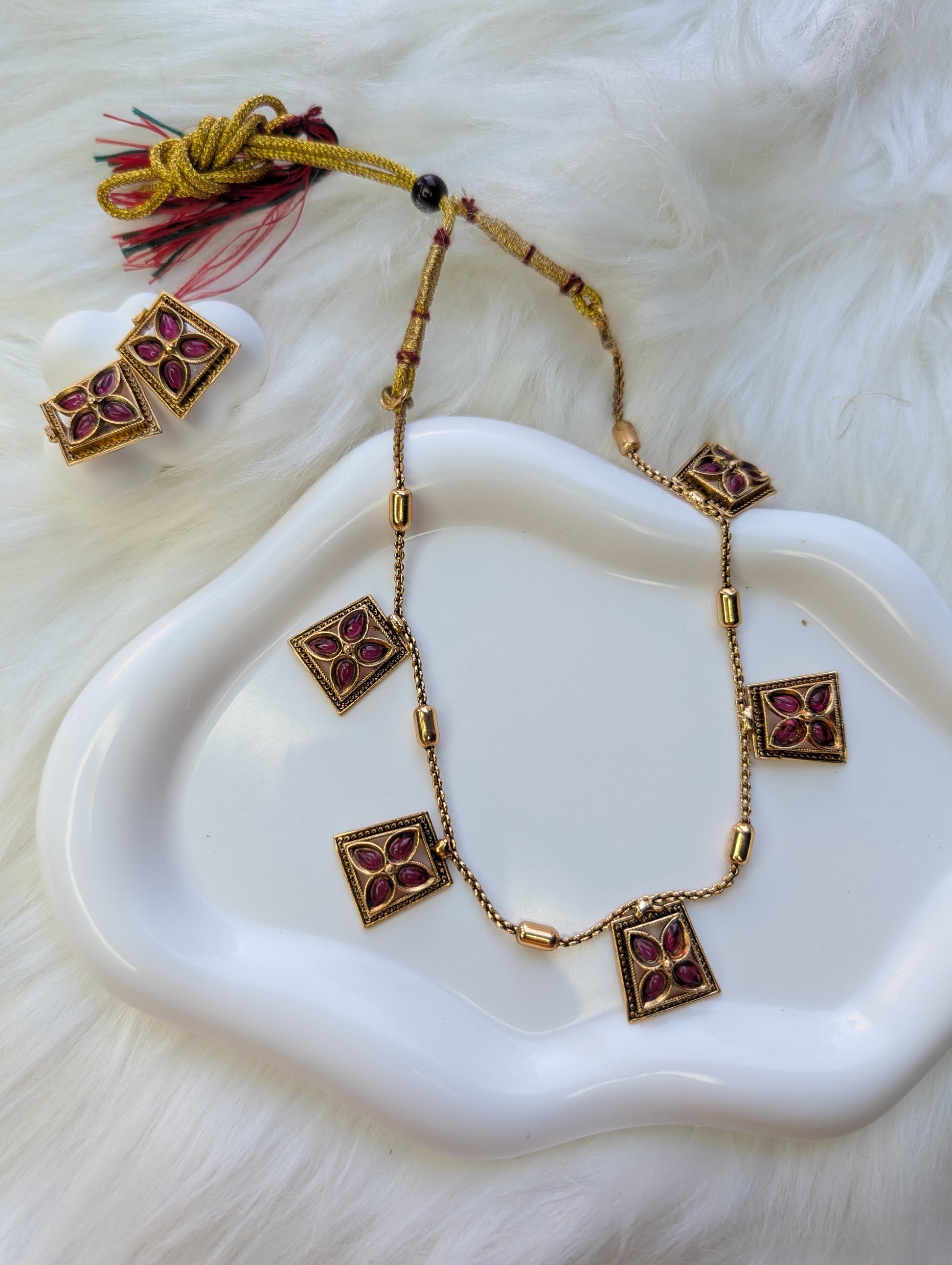 AUR059- Ruby Green Stone Traditional Necklace Necklace and Earring