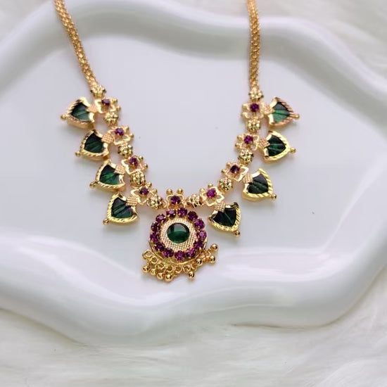 AUR036-4+4 Palakka Necklace - Kerala Traditional Jewelry Set