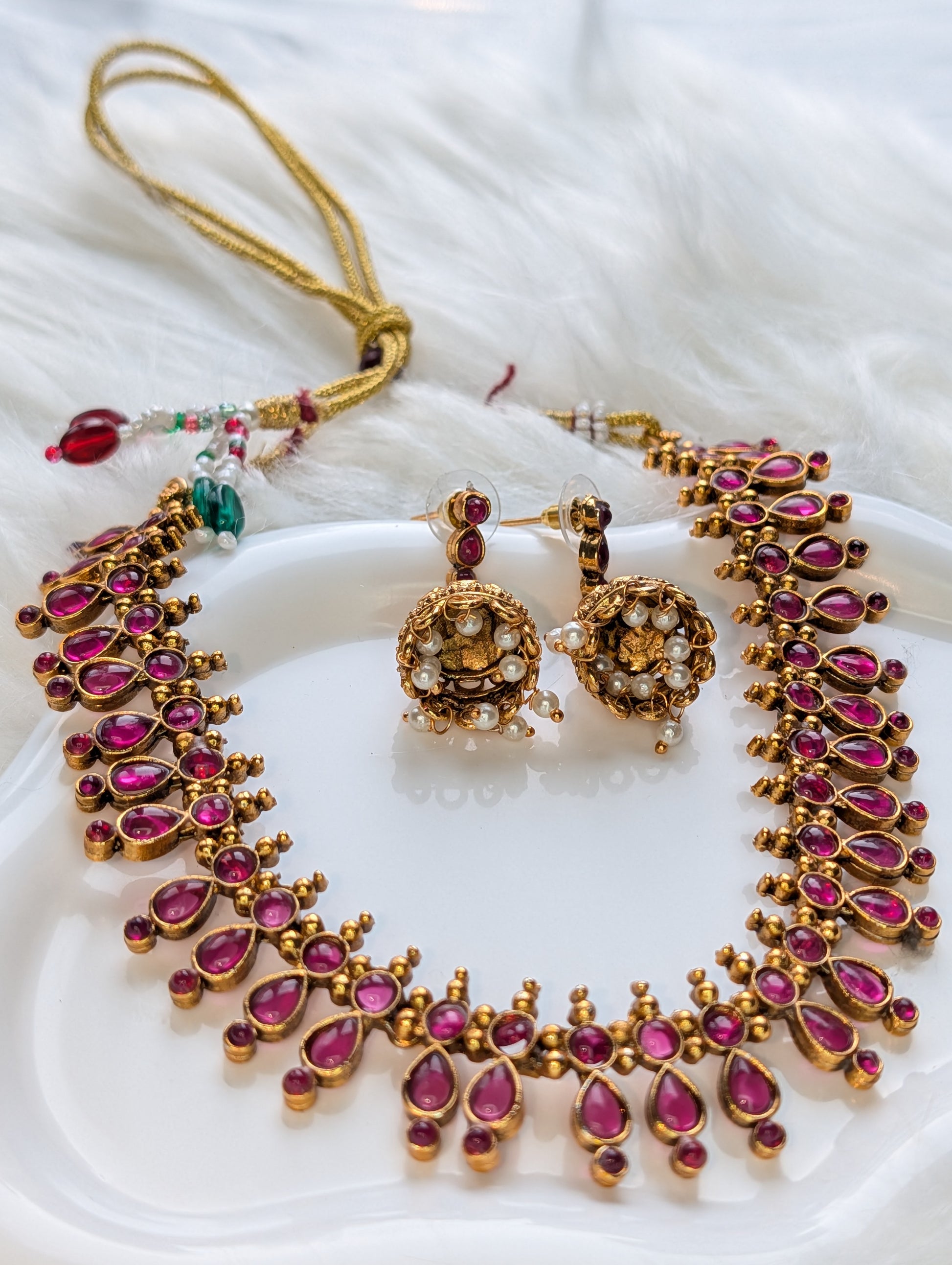 AUR063- Ruby Traditional Jewelry -Necklace and Earring